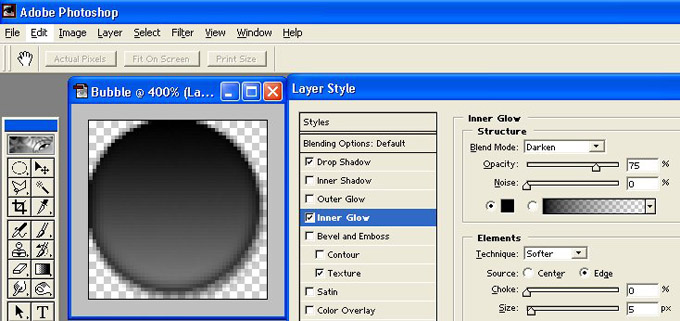 Then tick the Inner Glow box, make the colour the same as the darker colour of you circle [mine's black] & set the Blend Mode to Multiply & it should be looking something like the pic below (unless you've chosen different colours).